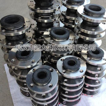 JGD型雙球體橡膠接頭是橡膠連接件的一種,它是由內膠層、增強層有多層刮膠錦綸簾子布、外膠層復合的橡膠球體和松套金屬法蘭組成。該產品不僅具有其它管件的導流性能,而且有良好的柔軟性、伸縮性、耐候性、耐高溫、耐高壓、耐腐蝕、防御位移變化及減振降噪等顯著特點。因而被廣泛應用于給排水、船舶、水泵,石油、化工、建筑、電力、冶金等工業部門。